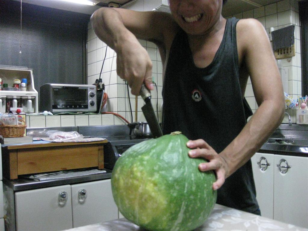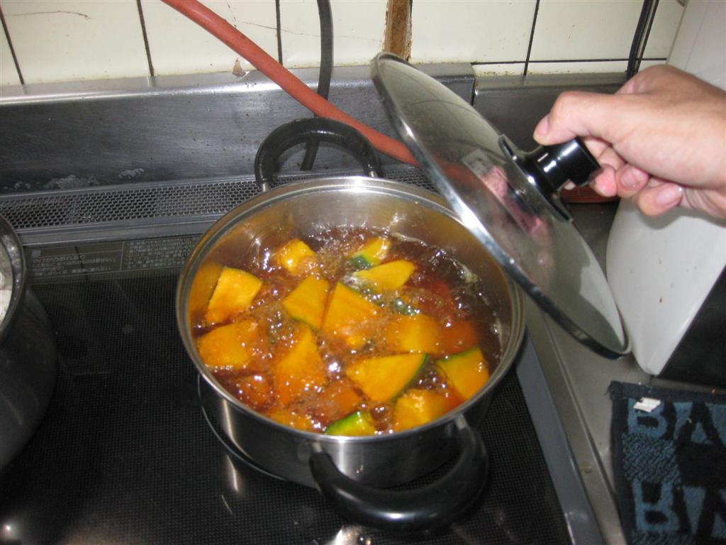 でけぇ・・・こんなに大きくなるとは思わなかったお(^ω^) さっそくお味見するため包丁でかぼちゃを切ることにしました しかし硬すぎて中々切れないのだ 全身全霊の力を込めて格闘すること2分 大きすぎるので一部をケーキのように少しだけ切って 調理することにしました やっぱりかぼちゃ料理といえばコレだろ! 懐かしくも美味しいかぼちゃのほっくり煮 ほくほくに煮たかぼちゃは 箸で持つと崩れるほど柔らかく甘くとても美味しいかぼちゃでした( ^ω^) こんな大きなかぼちゃなら毎日食ってもそうは減らないなと 思いながらかぼちゃ料理を堪能する百姓なのでした おわり